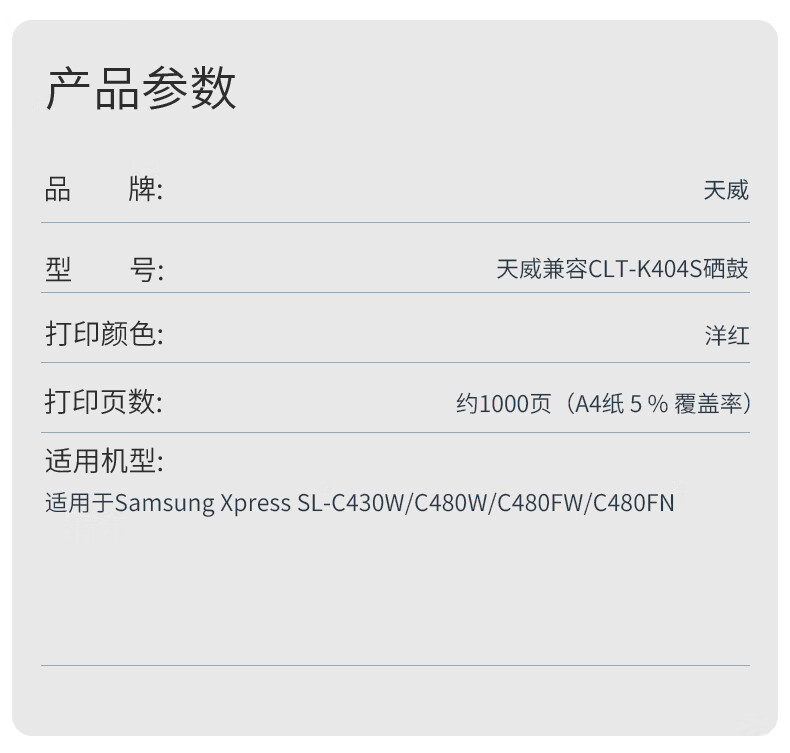 适用机型:Samsung Xpress SL-C430W/C480W/C480FW/C480FN