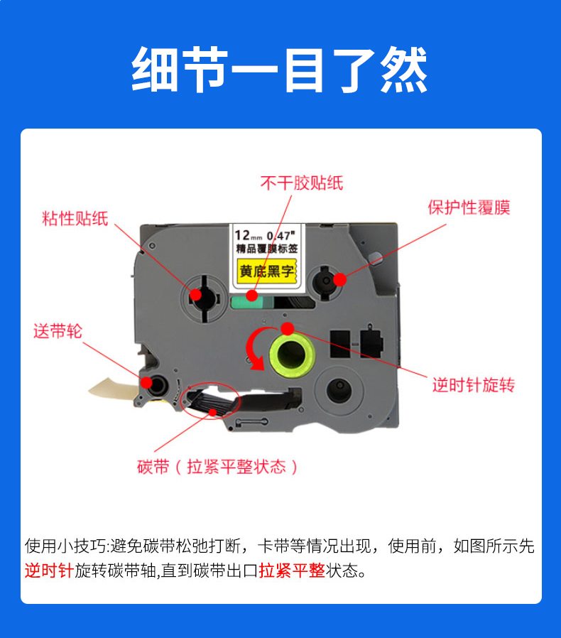 适用机型:brother兄弟标签打印机色带 标签纸覆膜碳带 PT-2030/E300/D450