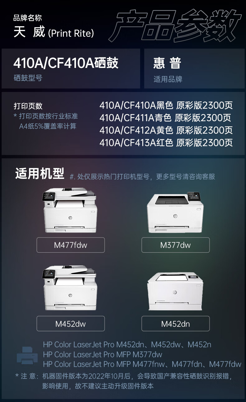 适用机型:HP-M452(CF410A)-黑硒鼓带芯片