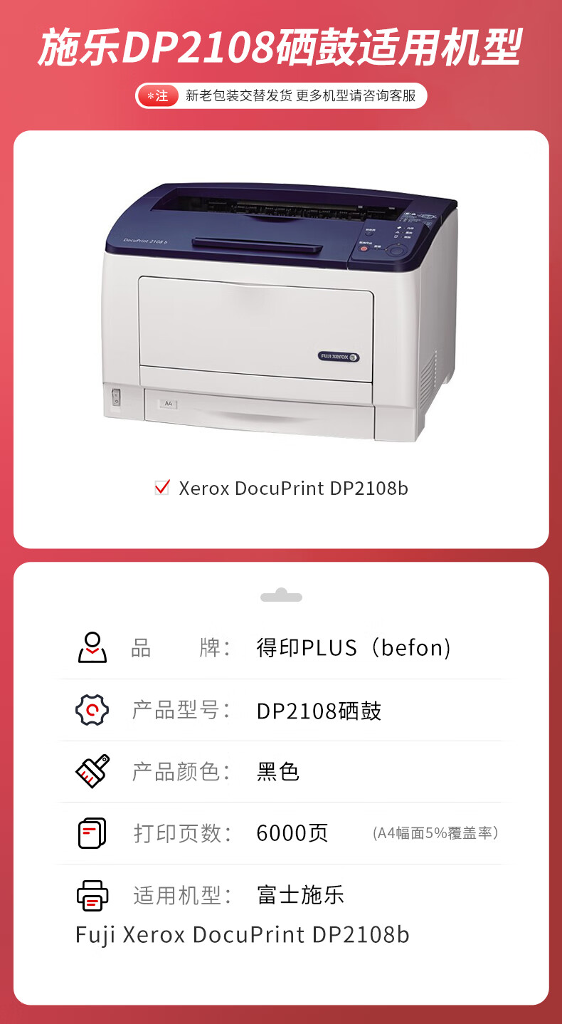 适用机型:富士施乐2108B硒鼓DP2108b墨粉盒