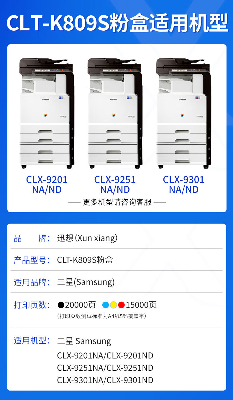 适用机型:三星CLX-9201ND/9201NA/9251ND/9251NA/9301NA打印机硒鼓墨盒
