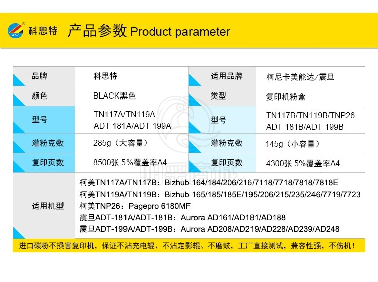 适用机型:Bizhub 164/184/7718/7818/7118/216/206//Minolta185/ 195/ 215/ 235/ 226/206/246/7223/7719/7723/B7121i/TN120