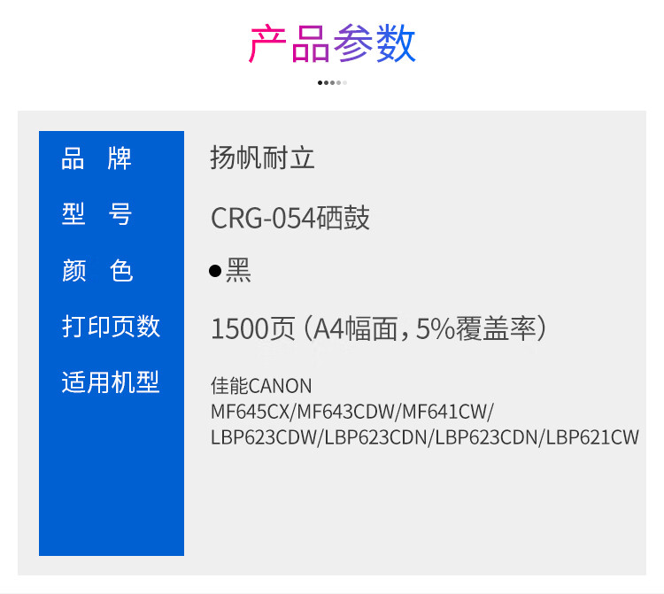 适用机型:佳能CANONMF645CX/MF643CDW/MF641CW/LBP623CDW/LBP623CDN/LBP623CDN/LBP621CW