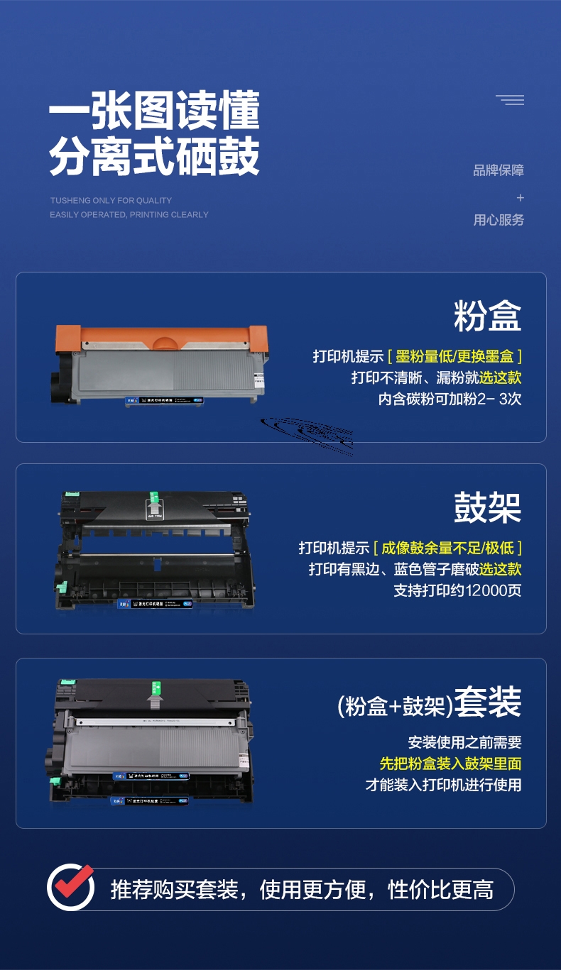 适用机型:兄弟打印机硒鼓MFC-7380 7480D DCP-7080D 7180DN HL-2260D 7880DN DR-2350打印机硒鼓