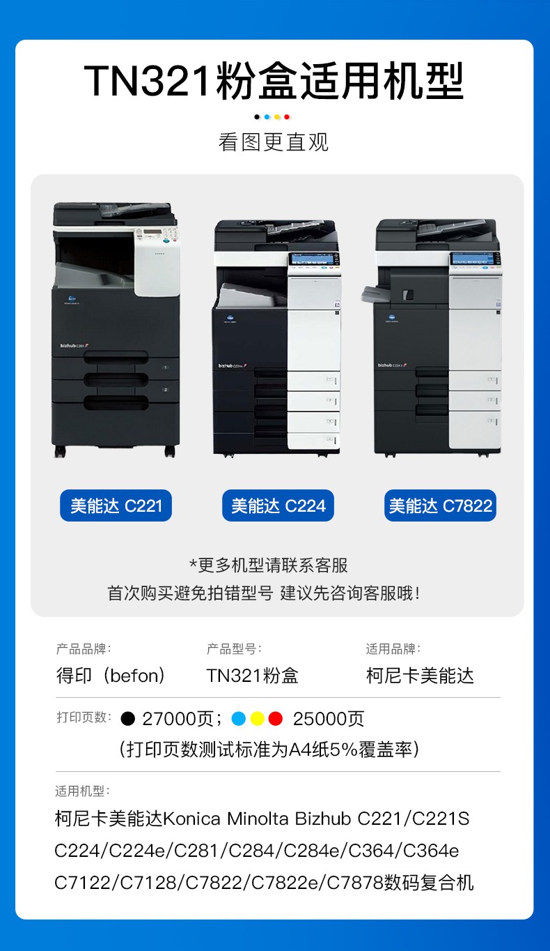 - 适用机型:美能达C224/C284/C364/C281墨盒C7822/C7828/C7822打印机碳粉盒