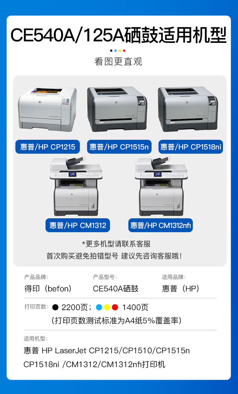 适用机型:HP惠普CP1215 1510 1515n 1518ni CM1312 1312nfi