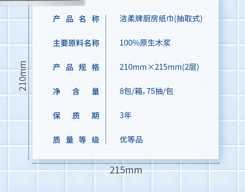 型号:厨房纸巾2层*75抽*8包