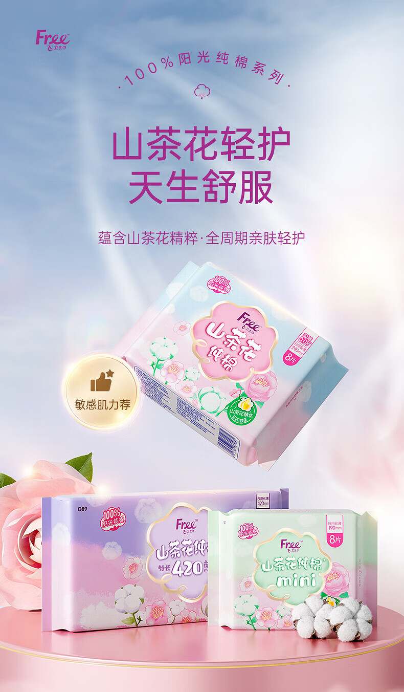 FREE 亲肤立围 丝薄棉柔量大熟睡 加长款夜用卫生巾382mm*3片