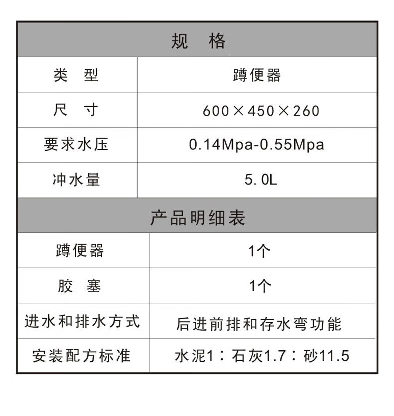 蹲便器材质:陶瓷