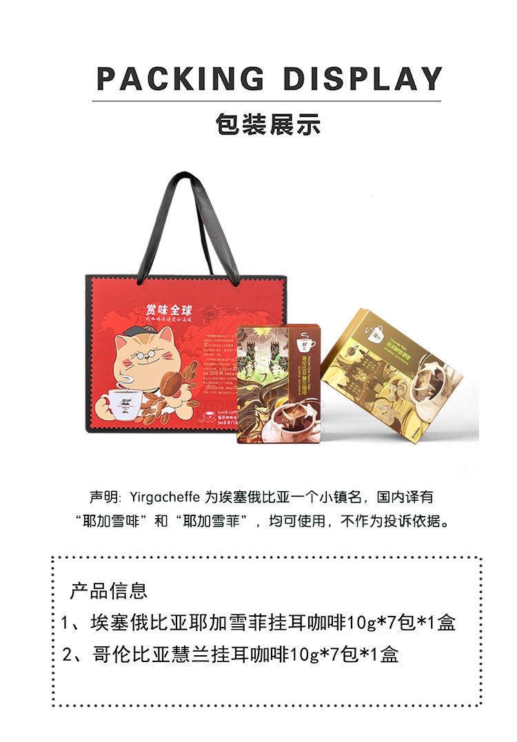 野鼬咖啡 猫屎咖啡连锁佑晨光 蓝山曼特宁礼盒 挂耳咖啡手冲滤挂黑咖啡粉精品送礼套装礼盒节日礼物 10g*7包*2盒