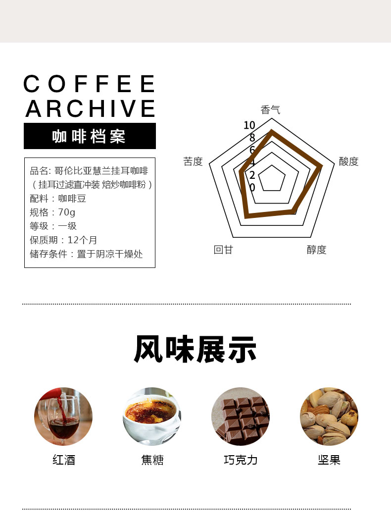型号:哥伦比亚慧兰咖啡手冲黑咖啡粉10g*7包