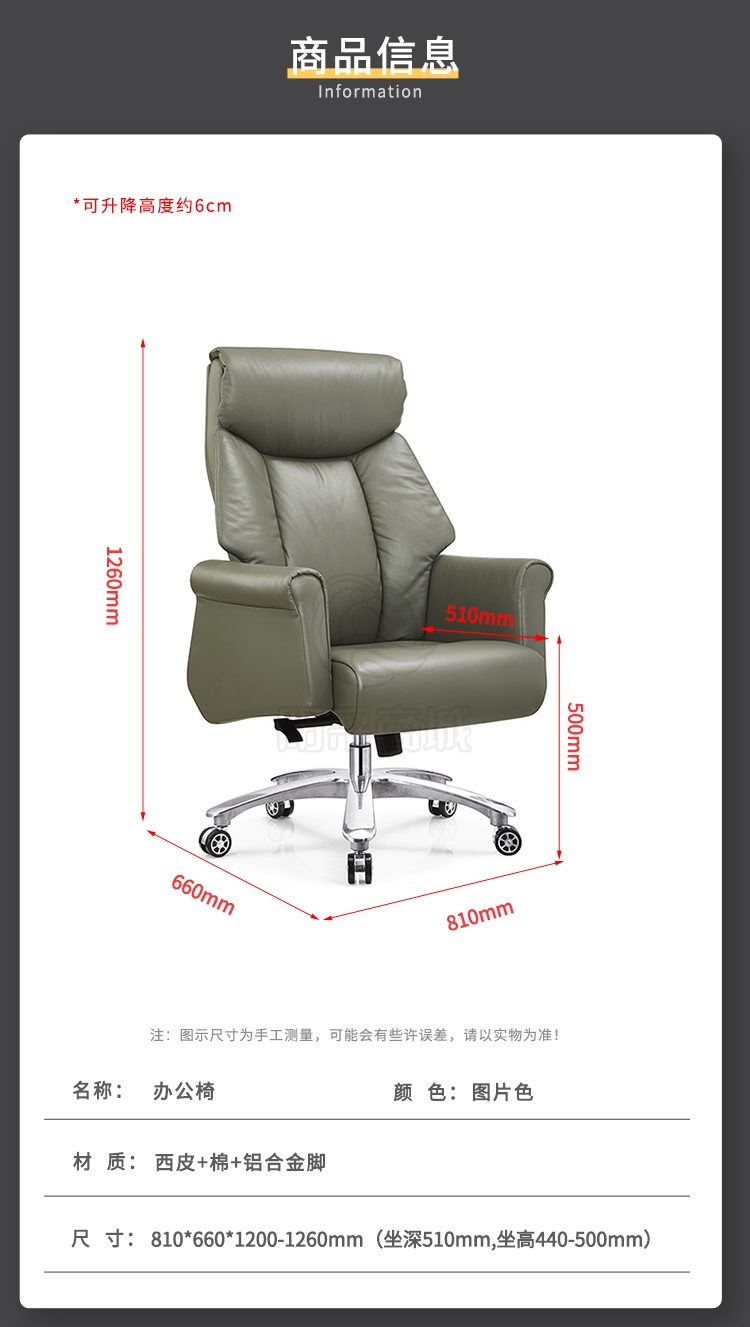 型号:五星脚可升降转椅 810*660*1200-1260 (坐深510,坐高440-500)