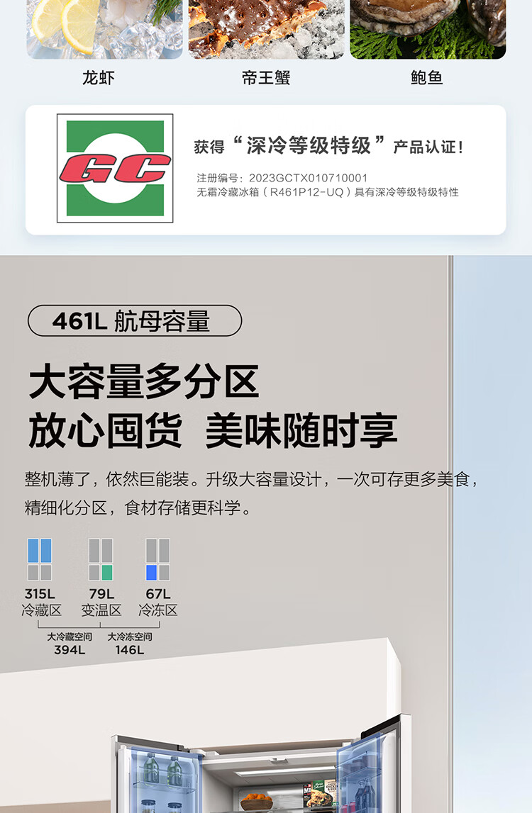 总容积:450-499L