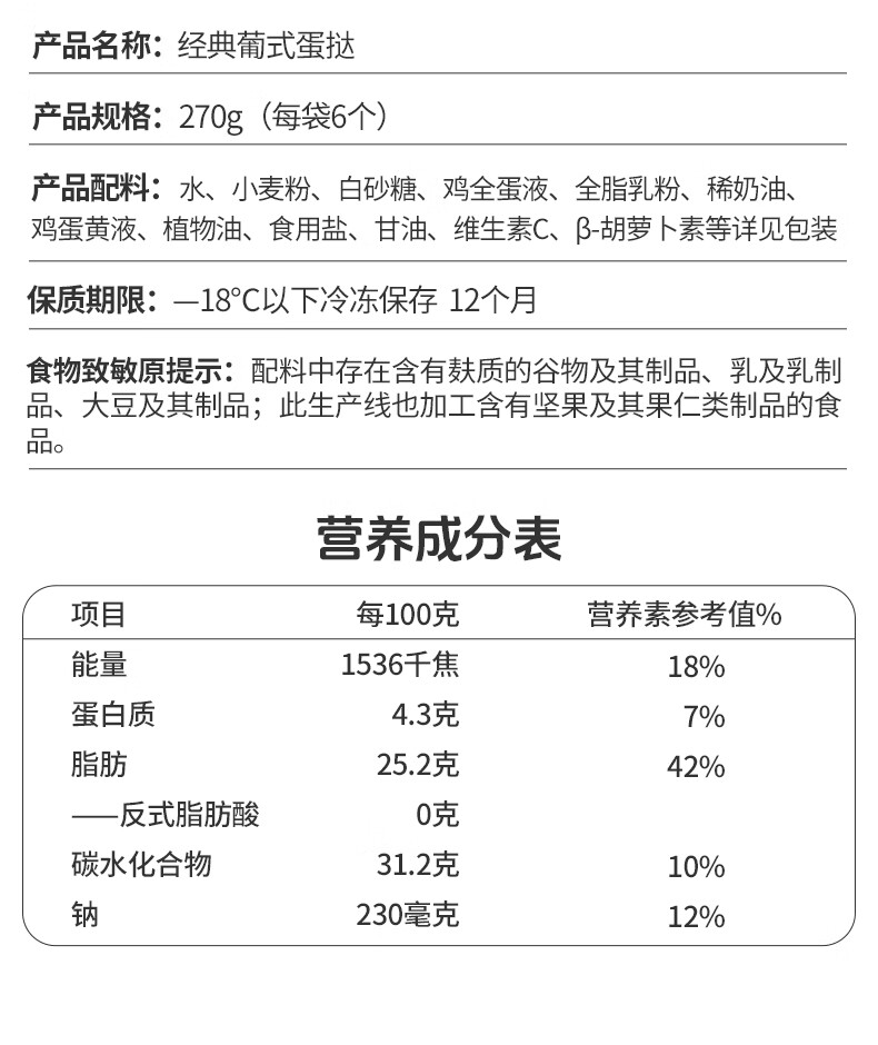 型号:经典葡式蛋挞270g*4
