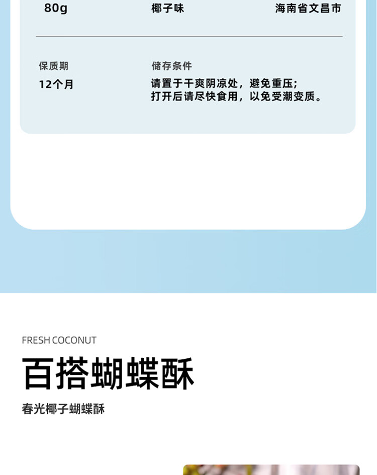 型号:椰子蝴蝶酥80g