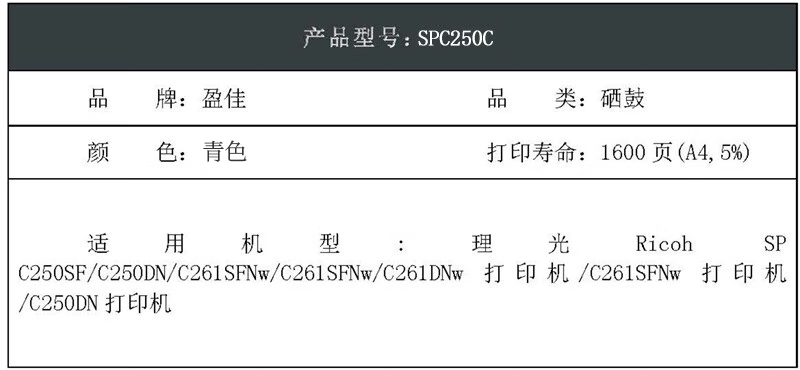 适用机型:光 Ricoh SP C250SF/C250DN/C261SFNw/C261SFNw