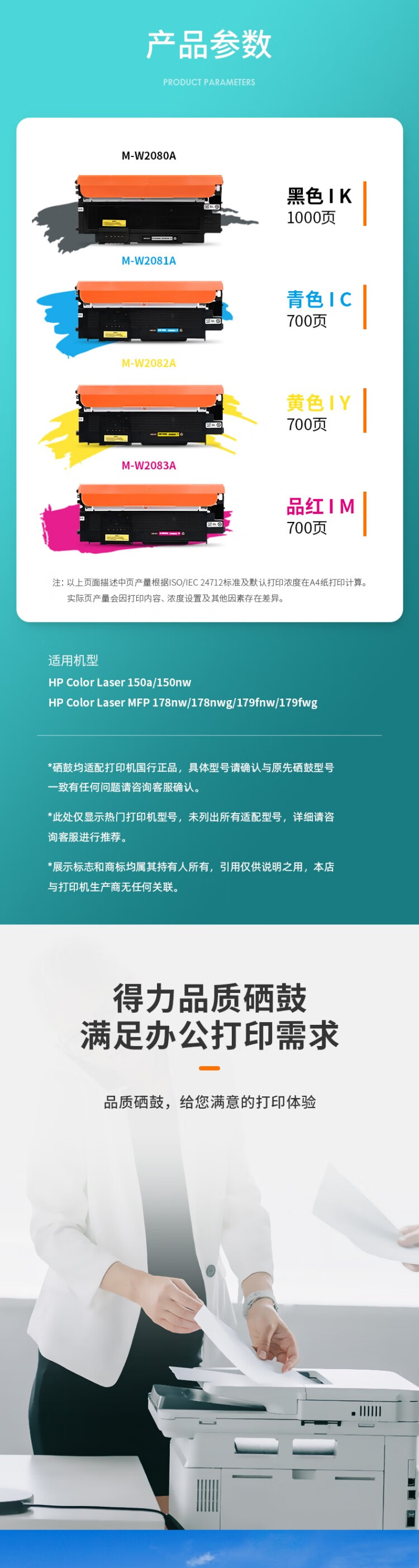 适用机型:惠普178nw硒鼓 179fnw粉盒 150a墨盒 150w 150nw w2080a